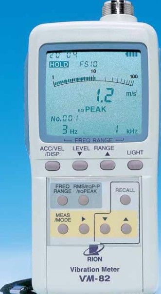 日本理音(RION)公司生產(chǎn)的VM-82便攜式數(shù)字測振儀重320克,是VM-63測振表的改進(jìn)型,使用分離式振動傳感器,可對微小振動及超強(qiáng)振動進(jìn)行測量,VM-82便攜式數(shù)字測振儀可測機(jī)械設(shè)備的振動位移、速度(烈度)和加速度。VM-82便攜式數(shù)字測振儀可以儲存1000組測點(diǎn)的數(shù)據(jù),并能與微機(jī)進(jìn)行通訊。已開發(fā)的軟件具有如下功能:(1).信息管理(包括機(jī)器、測點(diǎn)及測試數(shù)據(jù)的管理、建立檔案) (2). 儀器與微機(jī)通訊 (3).趨勢分析 (4).打印報表(機(jī)器報表、測點(diǎn)報表)(5).狀態(tài)判斷(自動判定狀態(tài):良好、注意、危險)